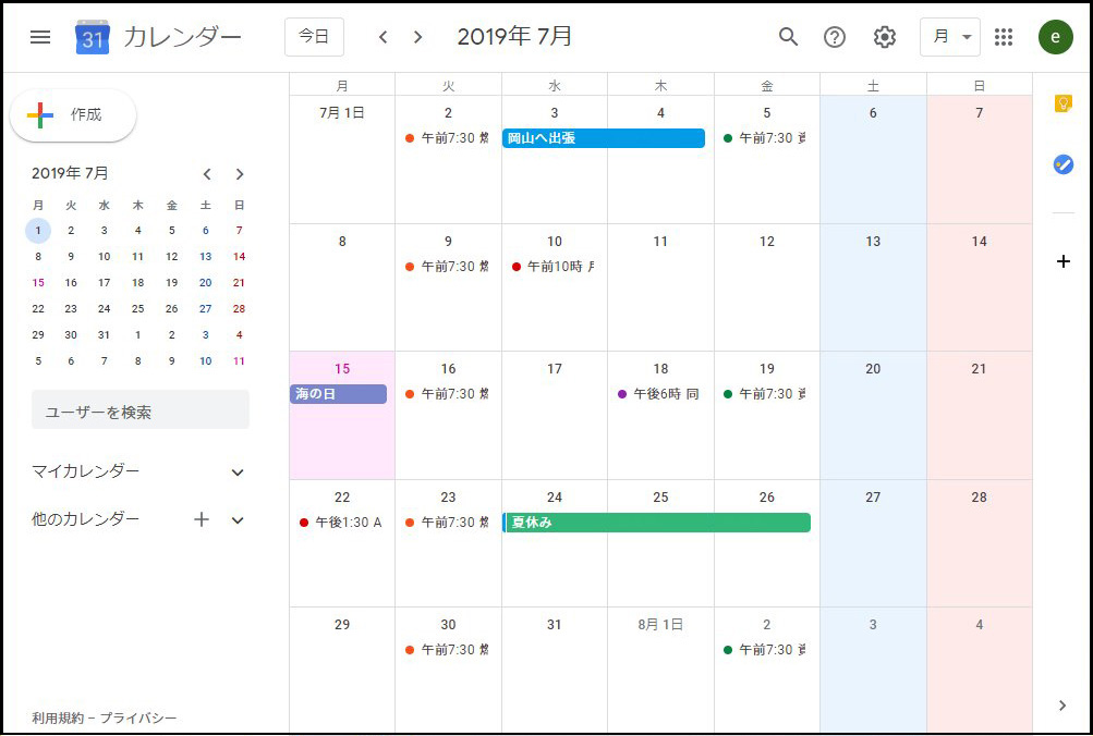 一般的なカレンダーは、週の始まりが日曜日になっている。Googleカレンダーの初期設定も同様だ。しかし、月曜日から始めて「土日を右に寄せたい」という人もいるだろう。この変更も可能だ。