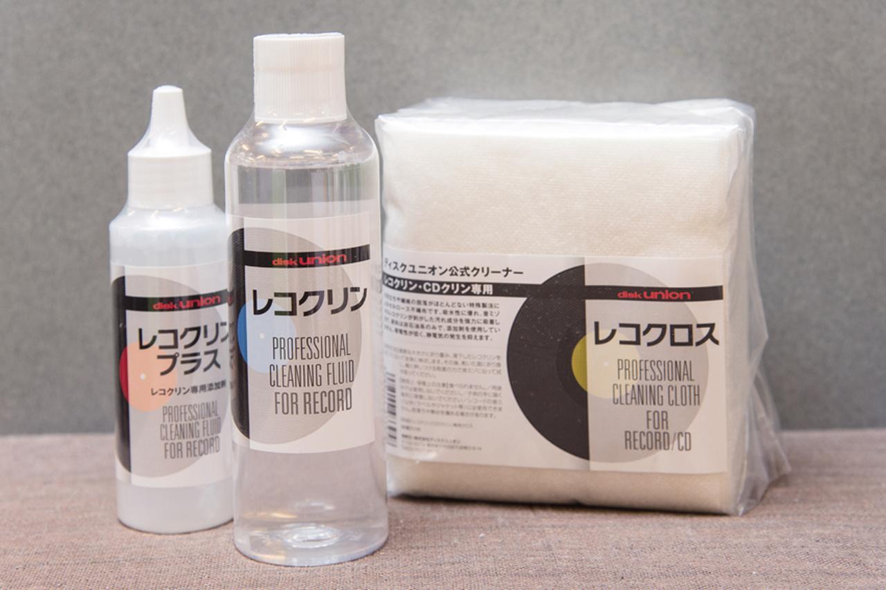 ディスクユニオンが業務用に開発した専用クリーナー「レコクリン」(1512円)と拭き取り専用クロス「レコクロス」(648円)。「レコクリン」は年間1万本を売り上げる人気商品。