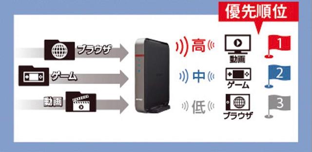 その機能とはバッファロー製の一部ルーターに搭載された「アドバンスドQoS」で、ネット動画やゲーム、ダウンロードなど、通信の種類別に優先順位を設定できるというものだ。