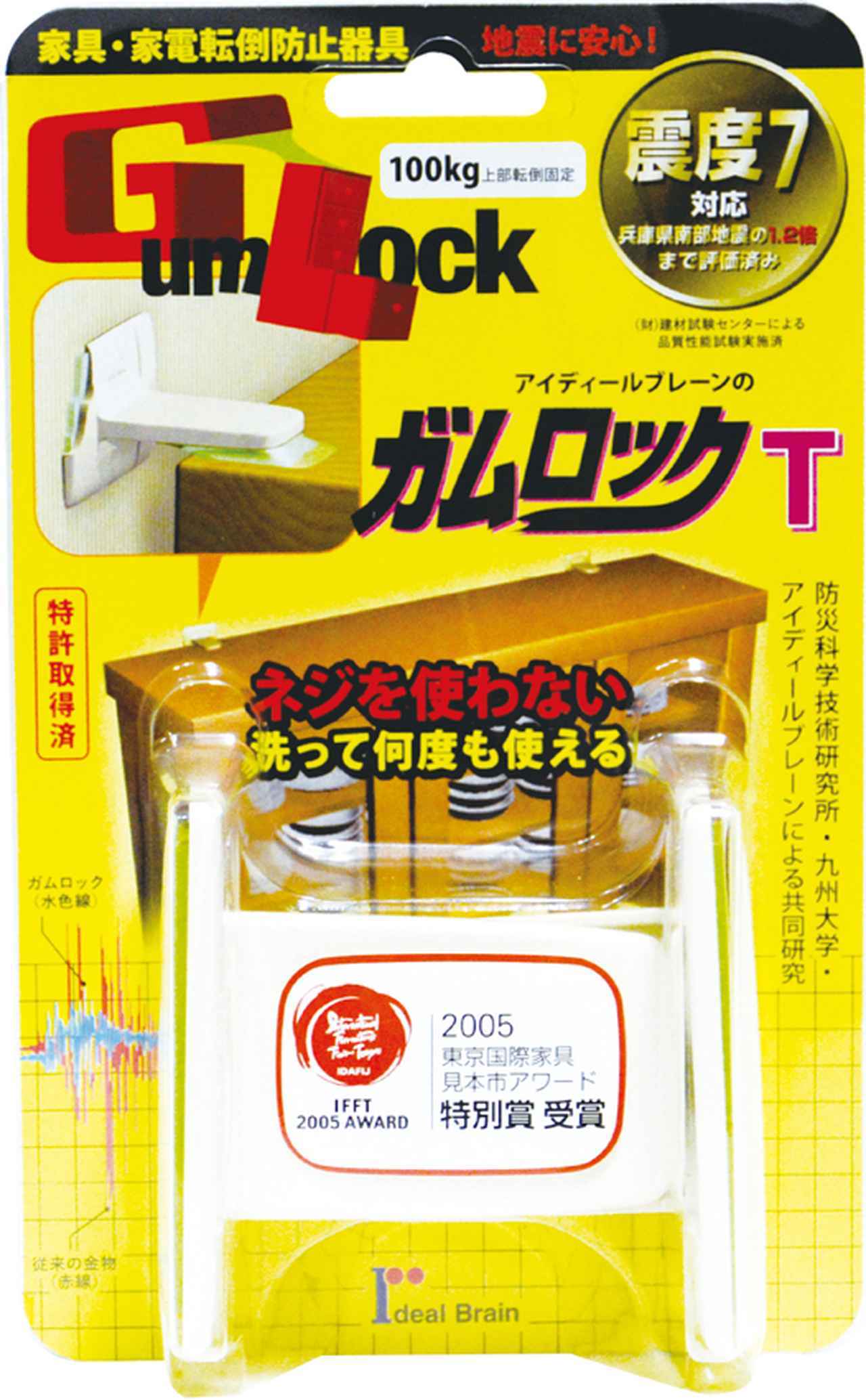 アイディールブレーンのガムロックは、多彩な家具・家電製品の固定に対応するシリーズがあり、特にこのガムロックTがおすすめだ。