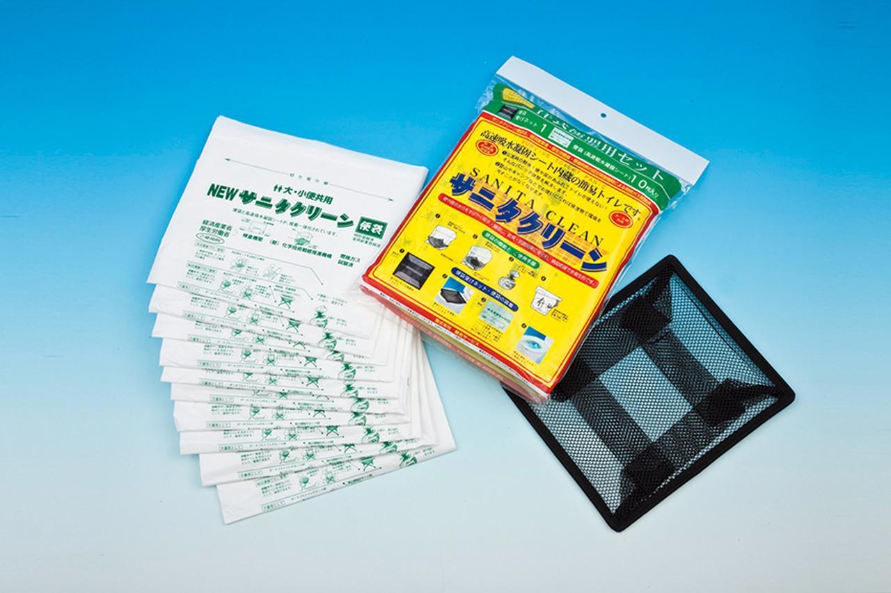 災害時用の簡易トイレはいろいろなタイプがリリースされているが、元祖ともいえるのが、このサニタクリーン。