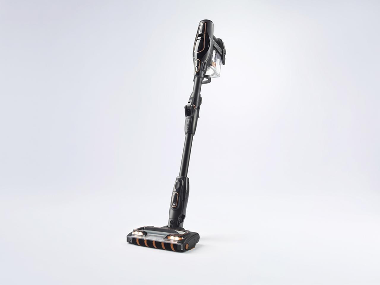 ボタン一つでパイプが曲がる、独自設計のコードレススティック掃除機。ソファーやベッドなど、家具の下までヘッドが届き、隅々まで掃除できる。シャークは、掃除機の販売実績が累計5000万台以上というアメリカ市場で、売り上げNo.1の掃除機ブランド。実売価格例は、上位のS30で6万9760円。
