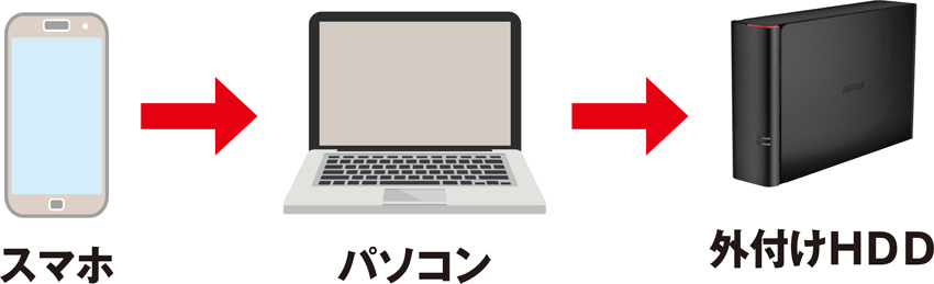 (2)スマホからパソコンに移し、さらに外付けHDDに移動する