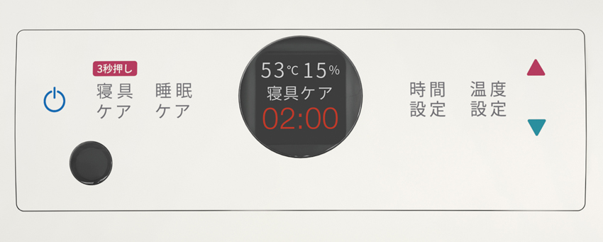 「寝具ケア」モードは、50℃以上の温風とイオンを布団に行きわたらせることで、ダニ対策、除湿・乾燥、除菌、脱臭が一度にできる。冬はホカホカ、夏はサラサラの状態を作り、快眠サポートにも役立つ。