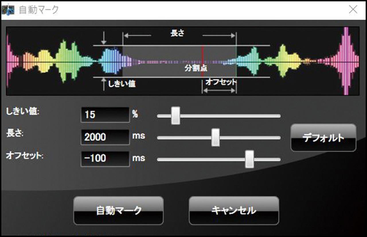 MP3で録音した場合、付属のアプリで、任意の位置で楽曲分割ができる。
