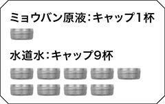 洗面器などに、ミョウバン原液をペットボトルのキャップ1杯分取り、そこへキャップ9杯の水道水を加えると、「10倍に薄めたミョウバン水」が出来ます。