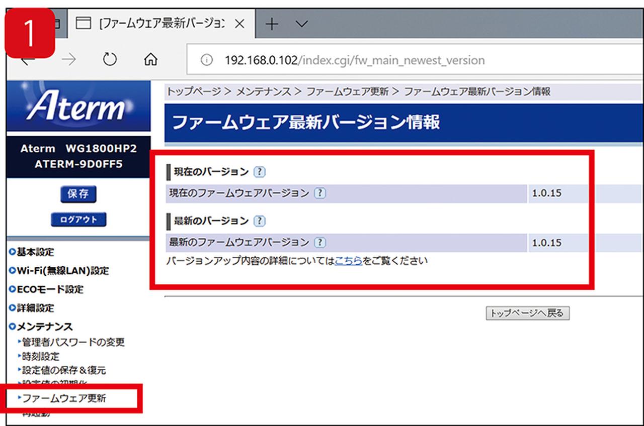ルーターなどの設定画面にアクセスし「メンテナンス」などの項目で、ファームウェアの新バージョンがあるかを確認する。