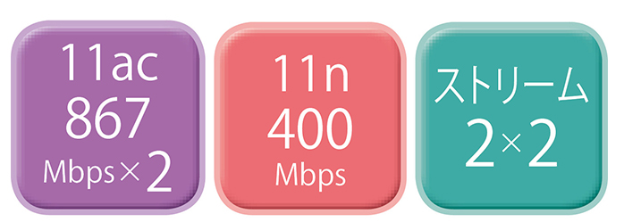 端末との通信とルーターとの通信に別々のバンドを使うため、データのやり取りに切り替えが発生せず、中継機経由でもルーターとの直接通信と同程度の速度を維持できる。中継機の増設も可能で、自宅の隅々まで電波を張りめぐらせられる。