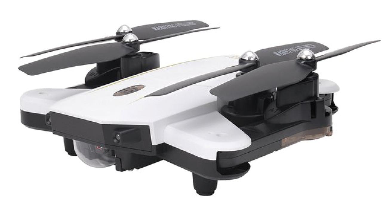 デュアルカメラ搭載の小型ドローンと送信機のセットモデル。送信機にセットしたスマホで空撮映像をリアルタイムで再生できる。