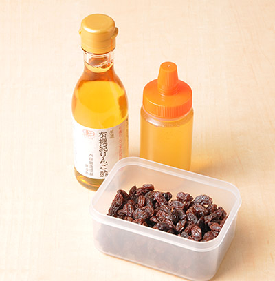 ❶リンゴ酢とハチミツをよく混ぜ合わせる。