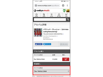 今やオールジャンルのハイレゾ作品がそろう「e-onkyo music」。複数の配信形式が用意されている作品は、「ファイル形式」で買いたい形式を選べる。
