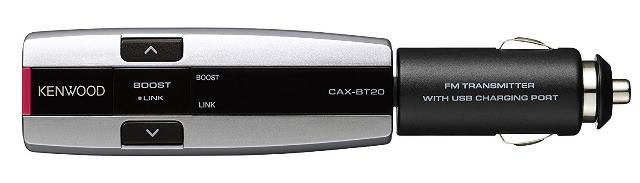 スマートなデザインのケンウッド製Bluetooth搭載FMトランスミッター「CAX-BT20」。本体色は3色から選べる。