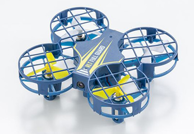 PFV対応で専用操縦機付属、スマホとの連携もできるかなり高度なモデル。1ボタン操作で離着陸できる機能や、気圧センサーによる高度維持機能など、操縦を補助する機能も多数搭載されている。機体全長約105ミリ