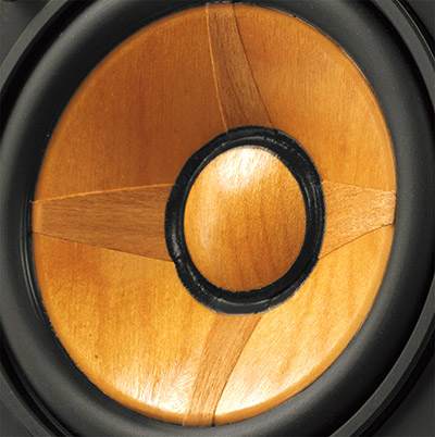 スピーカーは楽器でありたい、という考えから生まれた「ウッドコーンオーディオ」。スピーカーの振動板に木を採用したのが最大の特徴で、ほかにもドライバーユニットの背面やキャビネット内部に木材を用いて響きを整えている。