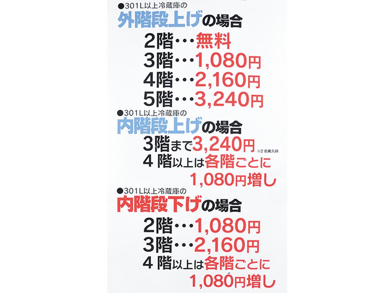 ちなみにこちらは、搬入作業に追加料金が発生した場合の料金表(消費税8%時のものです)。このあたりも事前にきちんと把握して、予算に組み込んでおきたい。