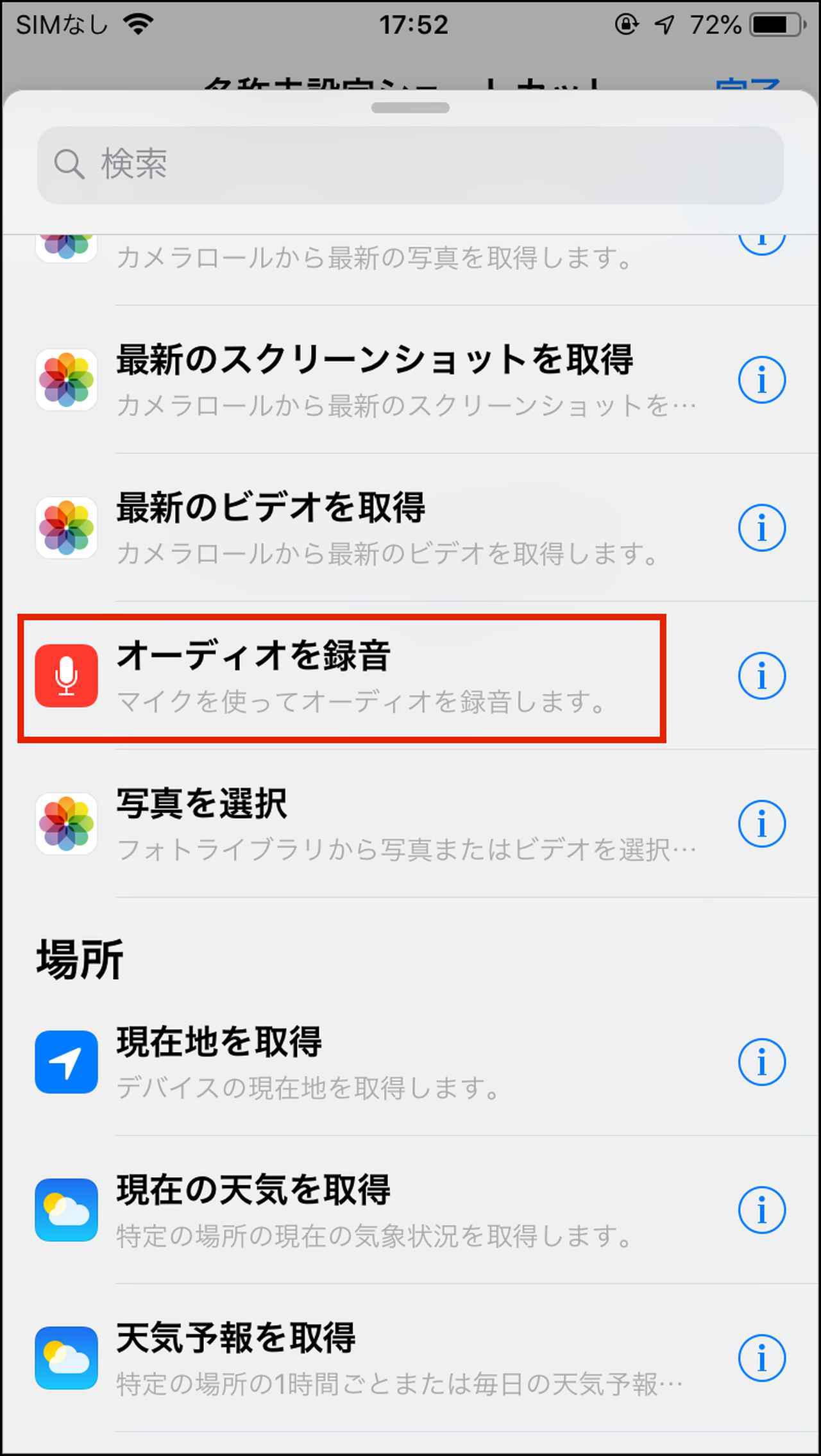 「アクション」とは、ショートカットの構成要素で、特定の機能を呼び出すことが可能。例えば、「Wi-Fiの設定」や「ブルートゥースの設定」「メッセージの送信」「現在地の取得」など、多種多様なアクションが用意されている。