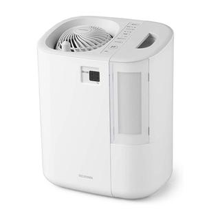 今回、アイリスオーヤマから発売された「サーキュレーター加湿器」は、加湿器とサーキュレーターの一体化により、超音波ハイブリット式の加湿方式で発生させた蒸気をサーキュレーターの風で効率よく室内に循環することができる。