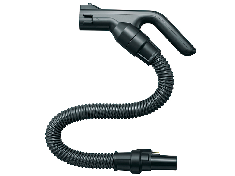 細かなゴミだけを吸引するほうきブラシ、持ち手が付いたホースなど、アタッチメントも個性的。ノズルを着脱するボタンが手元に付いているので、ツールの交換もスムーズに行える。