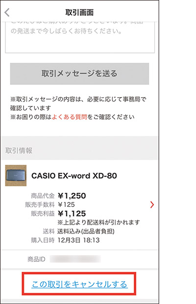 取引のキャンセルは出品者のみ行えるので、気になる点は出品者に相談しよう。お気に入りのユーザーは「フォロー」しておくといいだろう。