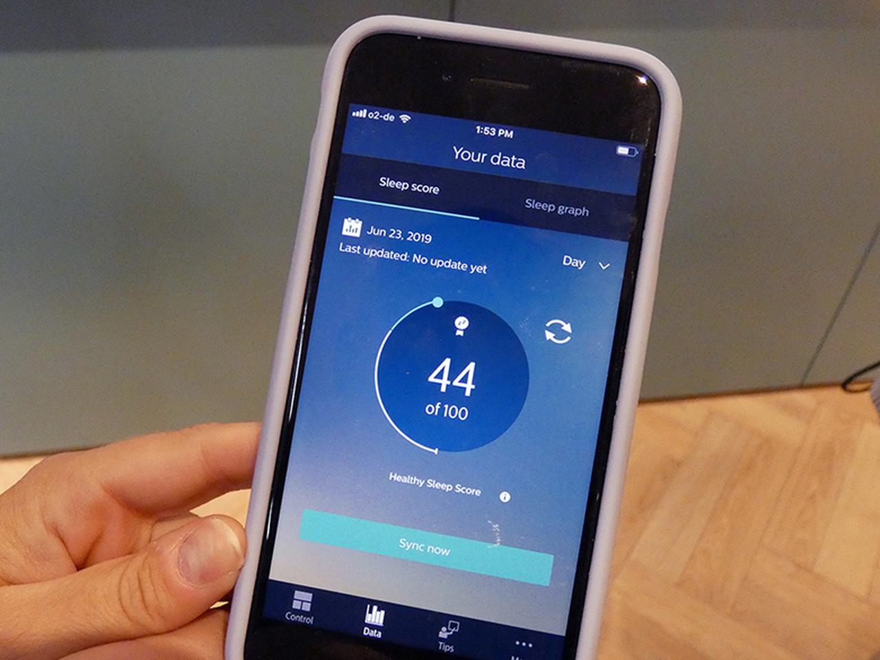 睡眠状態と睡眠スコアは専用のアプリ「SleepMapper」で確認でき、オーディオトーンによる深睡眠の持続時間が確認できる。アプリとの通信はブルートゥースを使用。