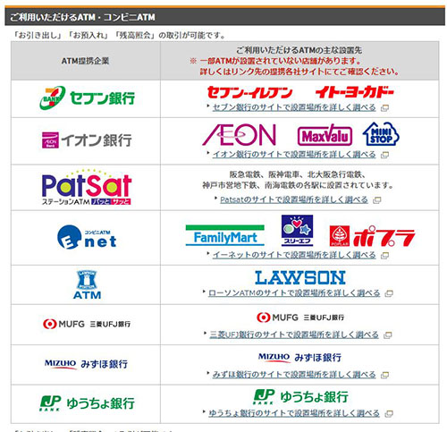楽天銀行は様々なATMと提携しています。具体的にはセブン銀行ATM、イオン銀行ATM、ゆうちょ銀行ATMといった代表的なものから、三菱UFJ銀行ATMやみずほ銀行ATMといった大手銀行にも対応。