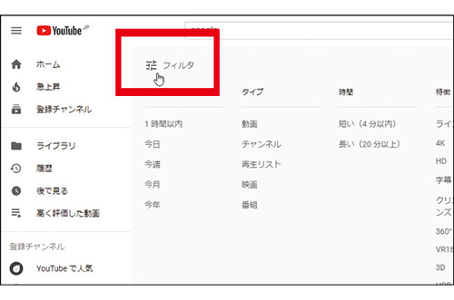 パソコンならYouTubeをさらに深く楽しめる! 例えば、画質や音量、画面サイズなどの調整も可能。また、アップロード日や動画のタイプを絞って検索したい場合は、「フィルタ」機能を使おう。新着順や視聴回数順の並べ替えもできて便利だ。