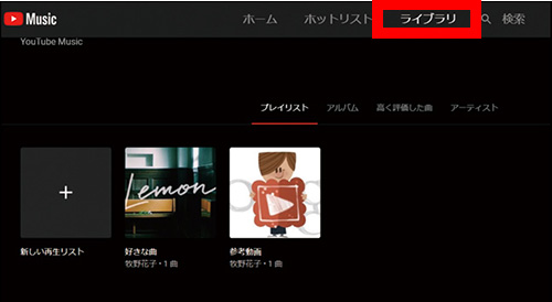 ❸画面上部の「ライブラリ」をクリックすると、プレイリストを表示できる。