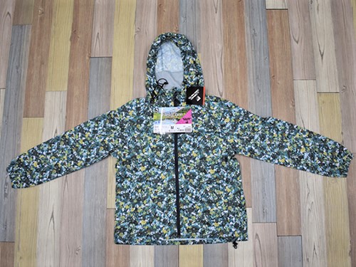 実際に袖を通すとジャケットの軽さにビックリ。ポリエステルでできた薄めの生地が使われていて、レインスーツよりも動きやすいように感じます。これならハイキングやキャンプを快適に楽しめそう。自然をイメージさせるグリーンカラーも相まって、なんだかすぐにでもキャンプに行きたくなってきました!