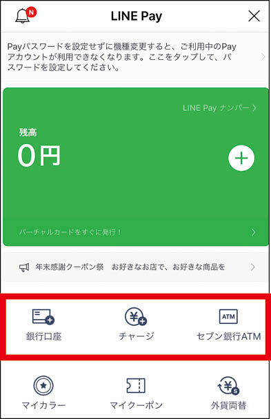 自分が口座を持っている銀行が対応していない場合や、口座を登録したくない場合は、コンビニでのチャージが便利。セブン-イレブンに設置されているセブン銀行のATMを使えば、現金でのチャージが可能。