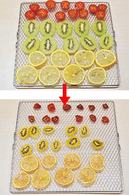 「低温ファンモード」では、ドライフルーツが。ペット用のジャーキー作りにも便利。