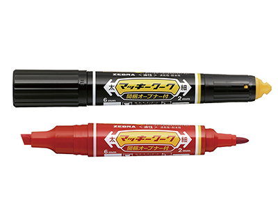 ちょっとしたアイデアをプラスすることで、定番商品の魅力がさらにアップすることがあるが、本品はまさにその好例。油性マーカーの代名詞といっていい「マッキー」のキャップに、プラスチック製の段ボールオープナーが付いており、段ボール箱の開梱と内容物の書き込みを1本で行うことができる。書き味は、いつものマッキーだ。