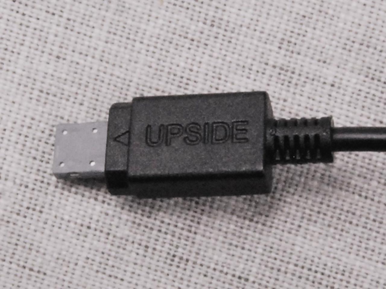 基本的には普通の充電ケーブルと同じように使えるのですが、ライトニング端子の使い方には要注意。端子の向きを逆さまにセットしてしまうと、端末に接続しても充電が始まりません。充電する際は、ライトニング端子に記載された「UPSIDE」の表記を必ず確認しておきましょう。