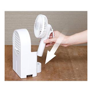 電源(定格入力): DC 5V USB電源(5V 500mA)▼内蔵電池:リチウムイオン電池▼充電時間(約): 5 時間▼使用時間(約): (満充電時) 強:2.5 時間、中:5 時間、弱:7 時間▼消費電力(約): 2.5 W▼質量(約): 本体:180g/冷風機能付き充電台:340g▼付属品: USBケーブル(ケーブル長:1m)、冷風機能付き充電台、首かけストラップ、取扱説明書(保証書)