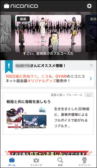 ドワンゴが運営する無料動画サービスだ。パソコンでの視聴は、基本的にブラウザーを使うが、スマホ、携帯ゲーム機などには専用アプリも用意されている。画質的にはHD相当で、大画面テレビでの視聴にはあまり向いていない(対応テレビもない)。