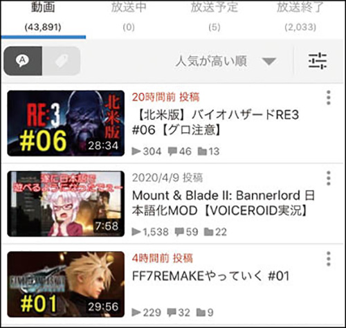 さまざまなゲームの実況動画はニコニコ動画の大きな魅力。スタイルも独特。