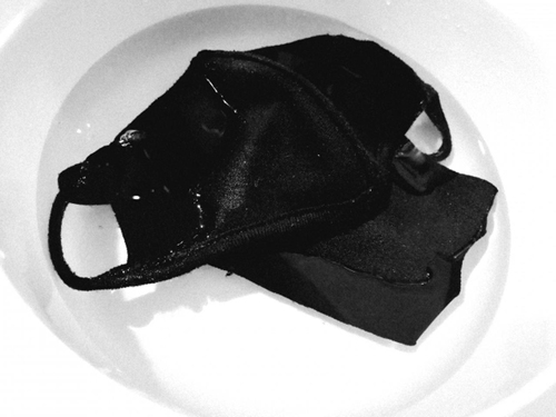 - 洗剤を捨て、水道水で布マスクをすすぐ