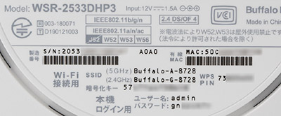 接続に必要となる情報のうち、「SSID」は、親機を特定するための名前と考えればいいだろう。工場出荷時に設定されるSSIDは、Wi-Fiルーターの本体や付属の情報カードに記載されている。