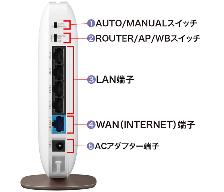 ❸有線LAN接続のパソコンや、各種家電などをLANケーブルでつなぐための端子