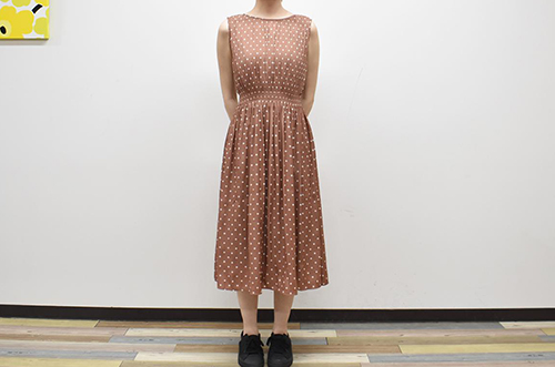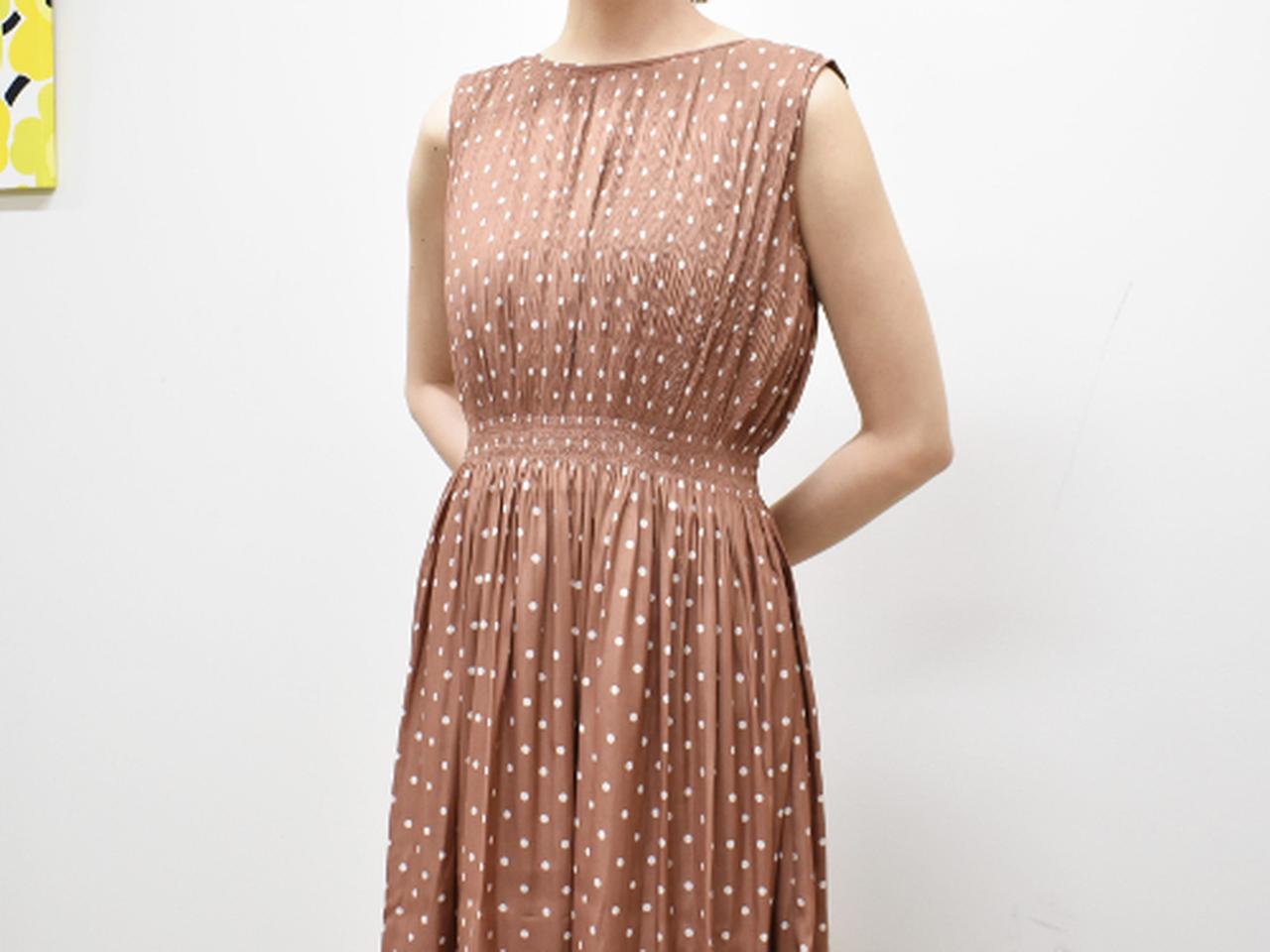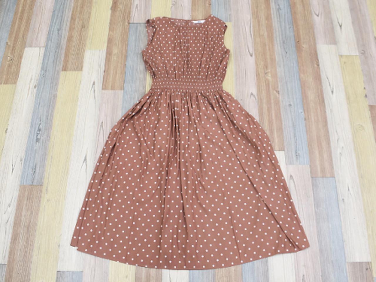 レトロなドット柄のプリントが可愛い同商品。カラーバリエーションはオフホワイト、ブラック、ブラウンの3パターンで、裏地としてキャミソール型のインナーがついています。お値段は3990円(税抜)ですが、高級感のある素材なので安く感じますね。
