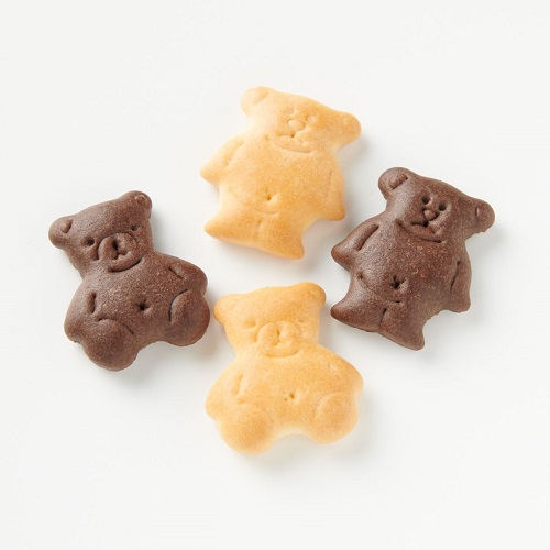 愛らしいくまの形のビスケットは、小さすぎず、大きすぎない、ちょうどいい一口サイズ。国産の小麦とてんさい糖を使って焼き上げた素朴な味わいは、プレーン味とココア味の2種類。甘さは控えめなので、いくつでも食べられるおいしさです。食べ過ぎを防止するためにも2人以上でシェアしましょう。1袋80g当たり385kcal。