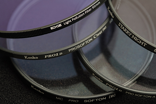 地上の風景と星空を同時に撮影する星景写真の分野では、最近地上部分の街灯、水銀灯やナトリウム灯の光をカットする光害カットフィルターと、画像に写る星の大きさを光の強さによって変化させるソフトフィルターの2枚を使うのが最近の定番になりつつあります。ソフトフィルターはケンコーのプロソフトンやLEEのポリエステルフィルターなどが定番です。