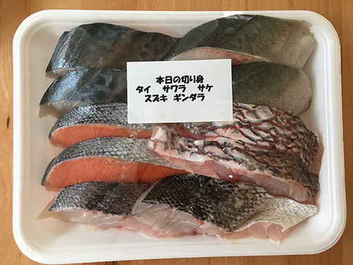 この日の内容は、タイ・サワラ・サケ・スズキ・ギンダラの5種類。