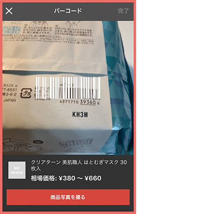 「商品の情報を入力」という画面が表示され、自動的にカメラが起動する。