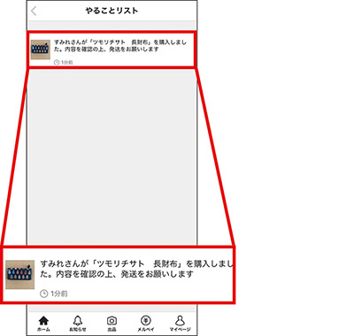 「やることリスト」に購入通知が届く。タップして詳細を確認する。
