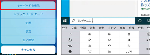 文字入力が必要な際は、メニューから「キーボードを表示」をタップ。なお、iOS端末の標準キーボードで日本語入力ができない場合は、代わりに「Gboard」というキーボードアプリを使うといい。