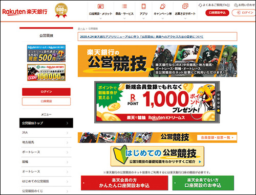 楽天銀行では、宝くじの購入や競馬、競輪などの全公営競技のネット投票ができるなど、個性的なサービスに対応している。