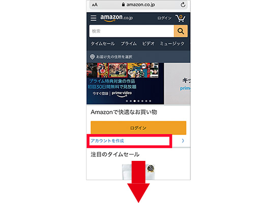 Amazonの場合、最初に表示されるページで「アカウントを作成」を選択しよう。