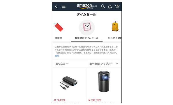 なお、気になる商品を「ほしい物リスト」や「ウォッチリスト」に追加しておけば、タイムセールの対象になると通知されるので、ぜひ活用しよう。