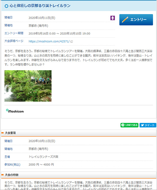 一覧の中から興味あるイベントをクリック。「大会詳細ページ」を見ると、より詳しい情報が出てきます。