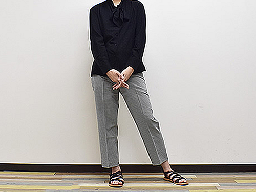 幅広いボトムスに合う「レーヨンボウタイブラウス」